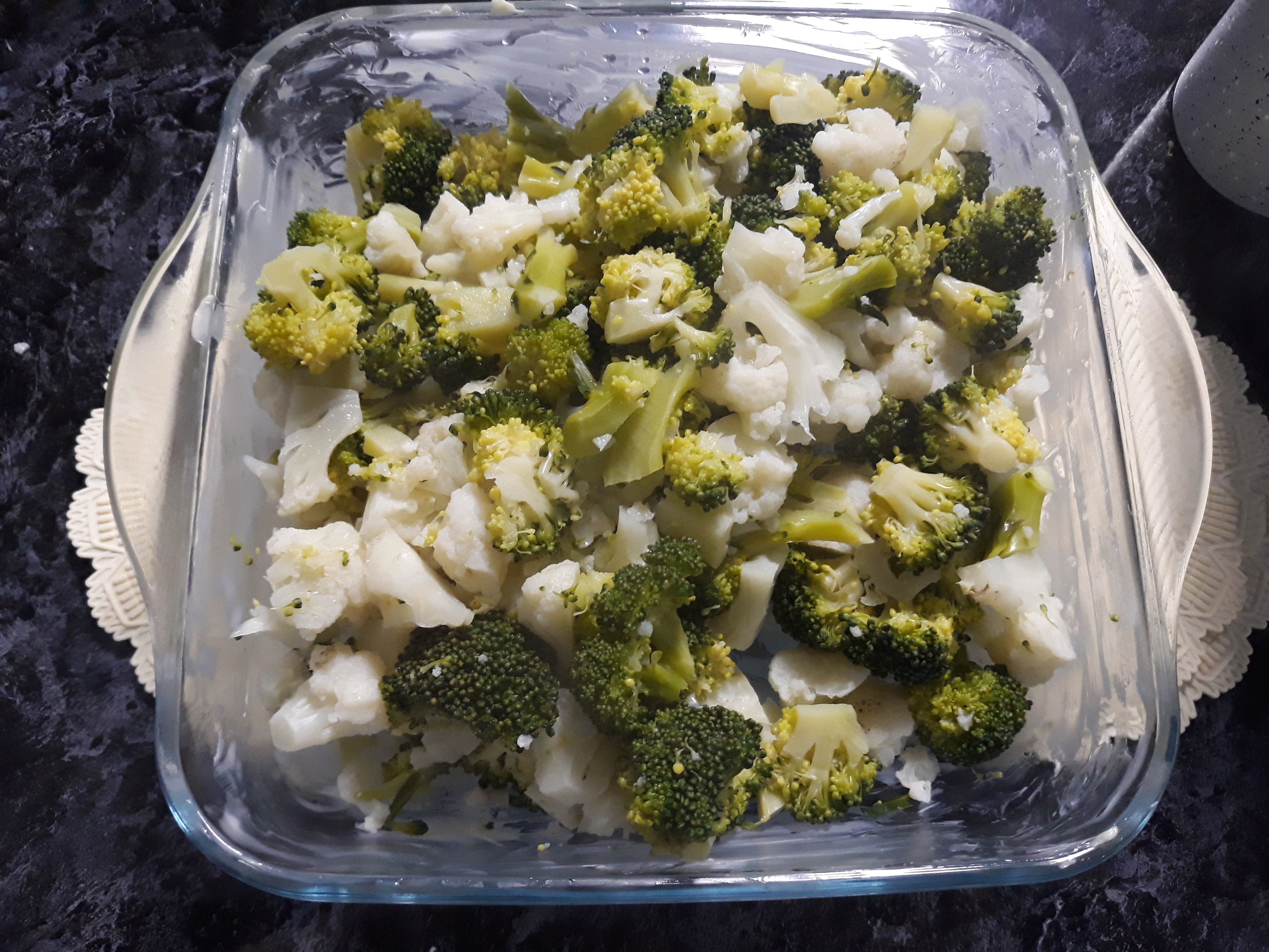 - Cut the cauliflower and broccoli up into small-medium sized pieces.